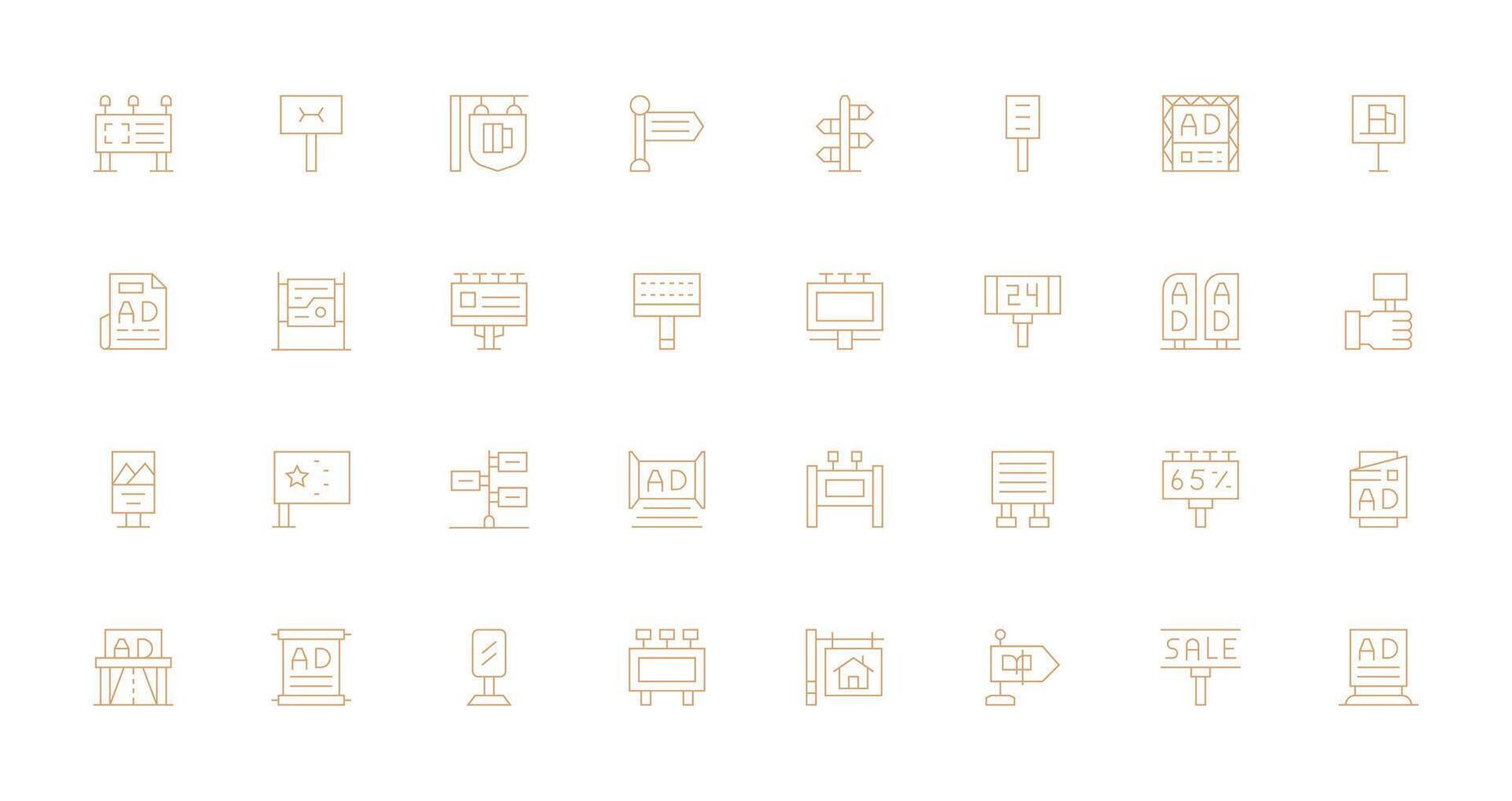 Billboard Icon Set with 32 Thin Line Graphics Essential Icons for Rapid UI Building Free Vector