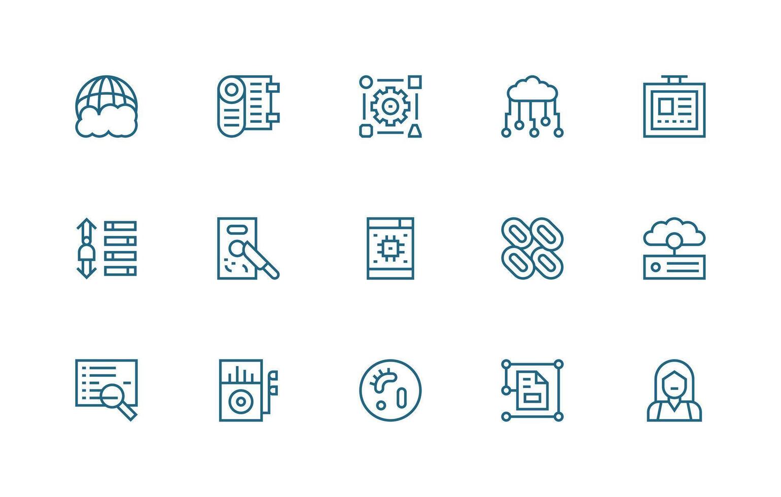 Regular Line Style Database Icons with 15 Vectors Multi-Purpose Icon Pack for Templates