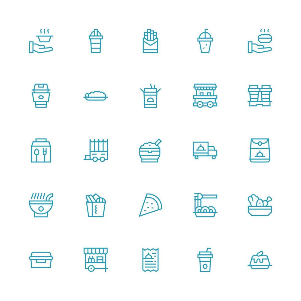 Takeout Icon Set with 25 Medium Stroke Outline Graphics Responsive Icon Set for Flexible Layouts Free Vector