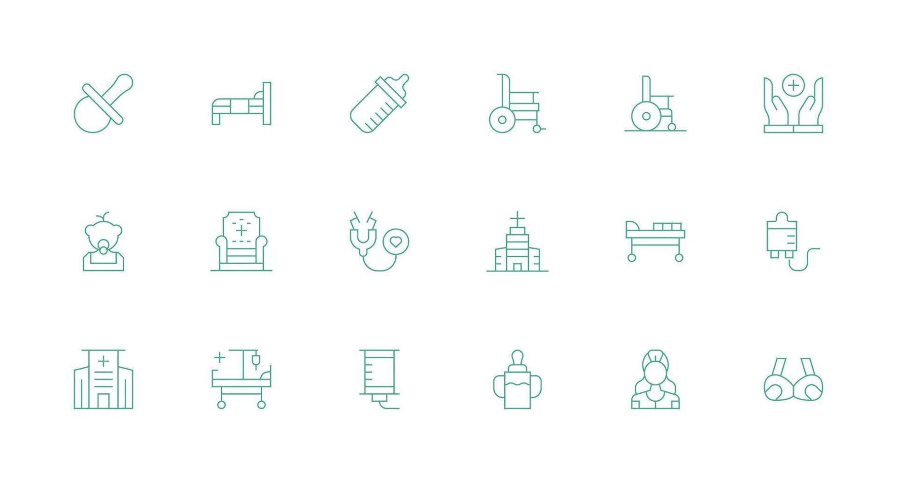 18 Minimal Line Style Icons from Nursing Collection Sharp Icons for Presentations Free Vector