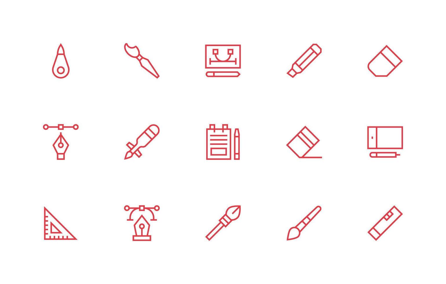Drawing Tool Icon Collection with 15 Regular Line Designs Interface Icon Collection for Daily Projects vector