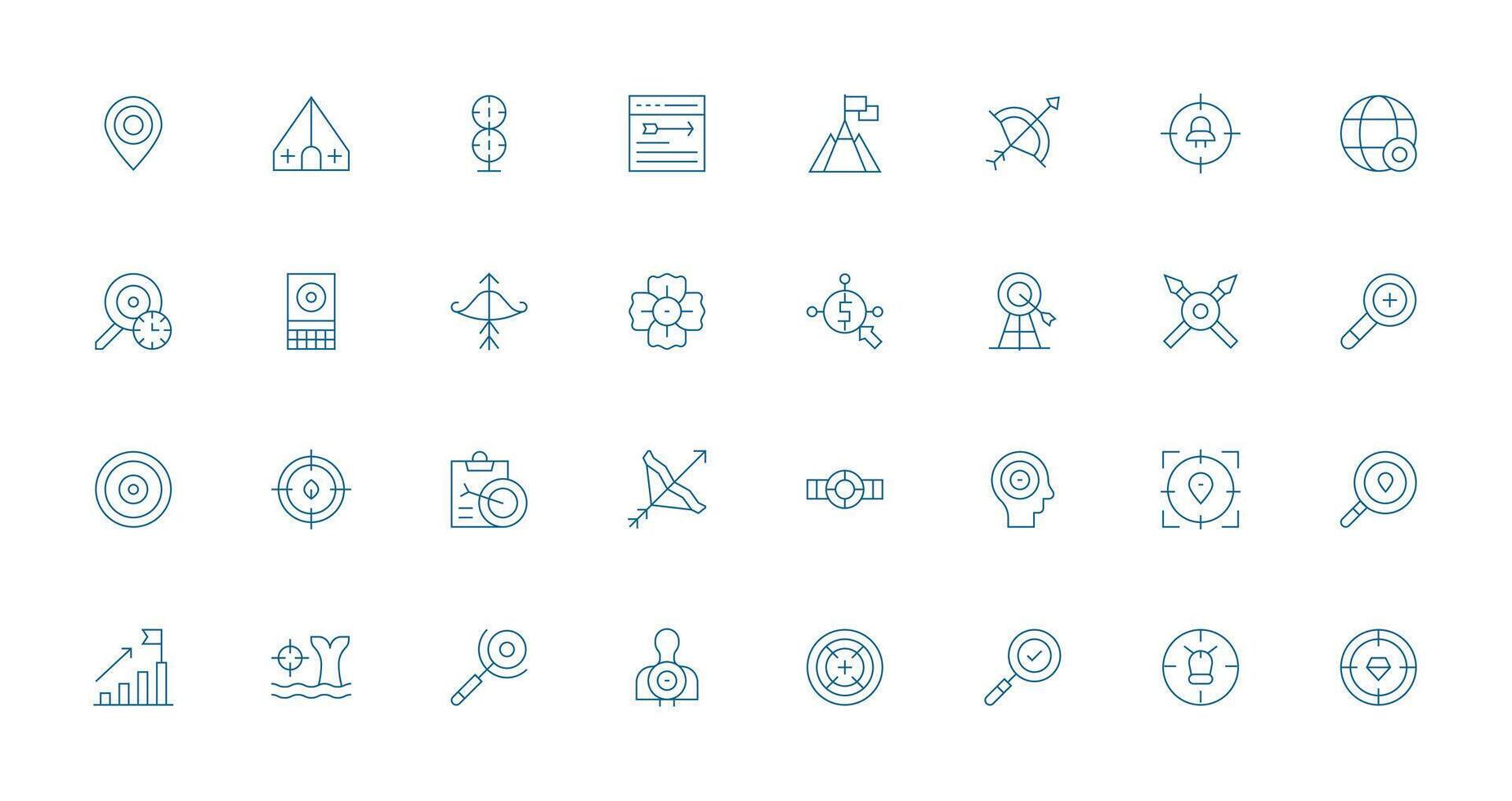 32 Thin Line Vectors for Target Theme Minimal Icon Set for Interface Projects