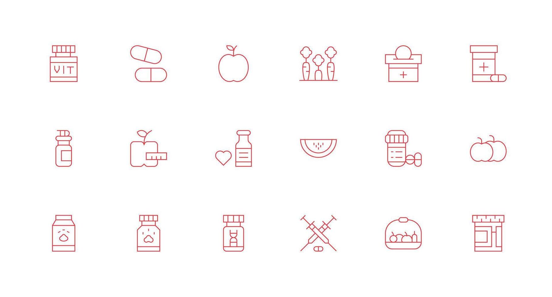 Vitamins Design Icons featuring 18 in Minimal Line Style Web and App Icon Pack Collection Free Vector