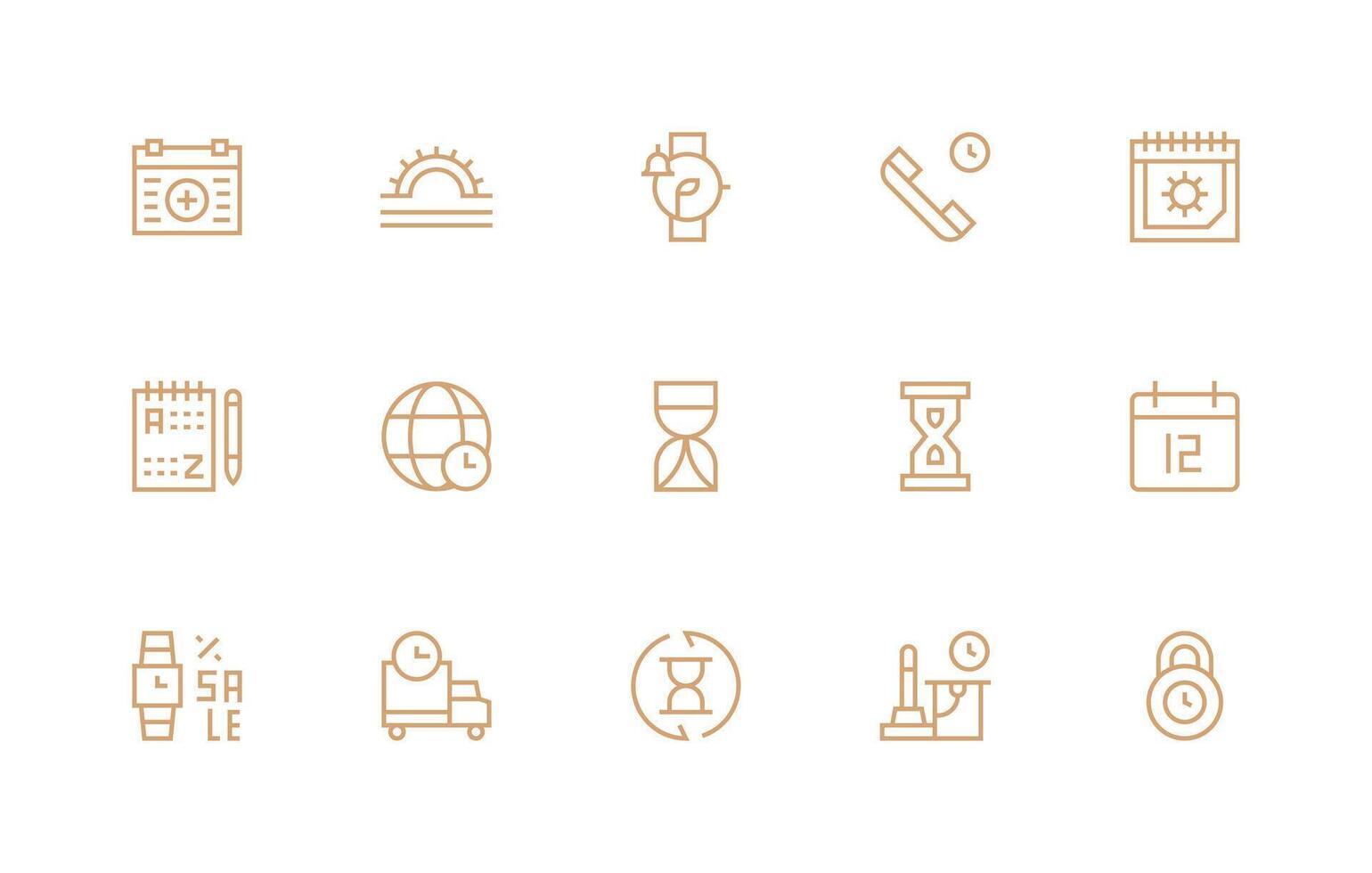 Time Icon Set with 15 Regular Line Graphics UI-Ready Icon Collection vector