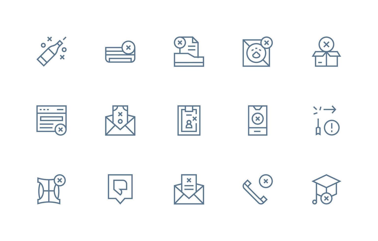 15 Regular Line Icons for Rejected Graphics Style Icon Set vector