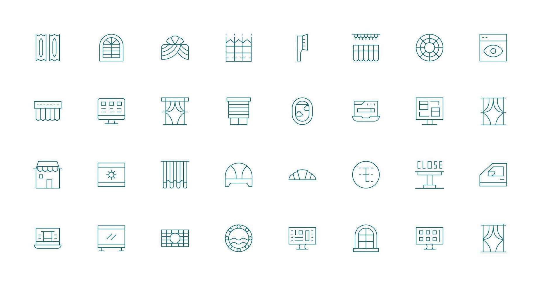 Window including 32 Thin Line Illustrations Quick Access Icons for UI Development Free Vector