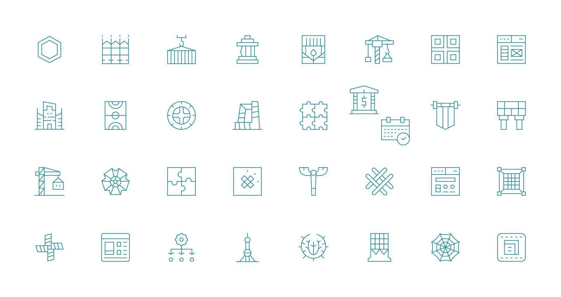 32 Framework Icons in Thin Line Aesthetic Multi-Style Icons for Creative Projects vector
