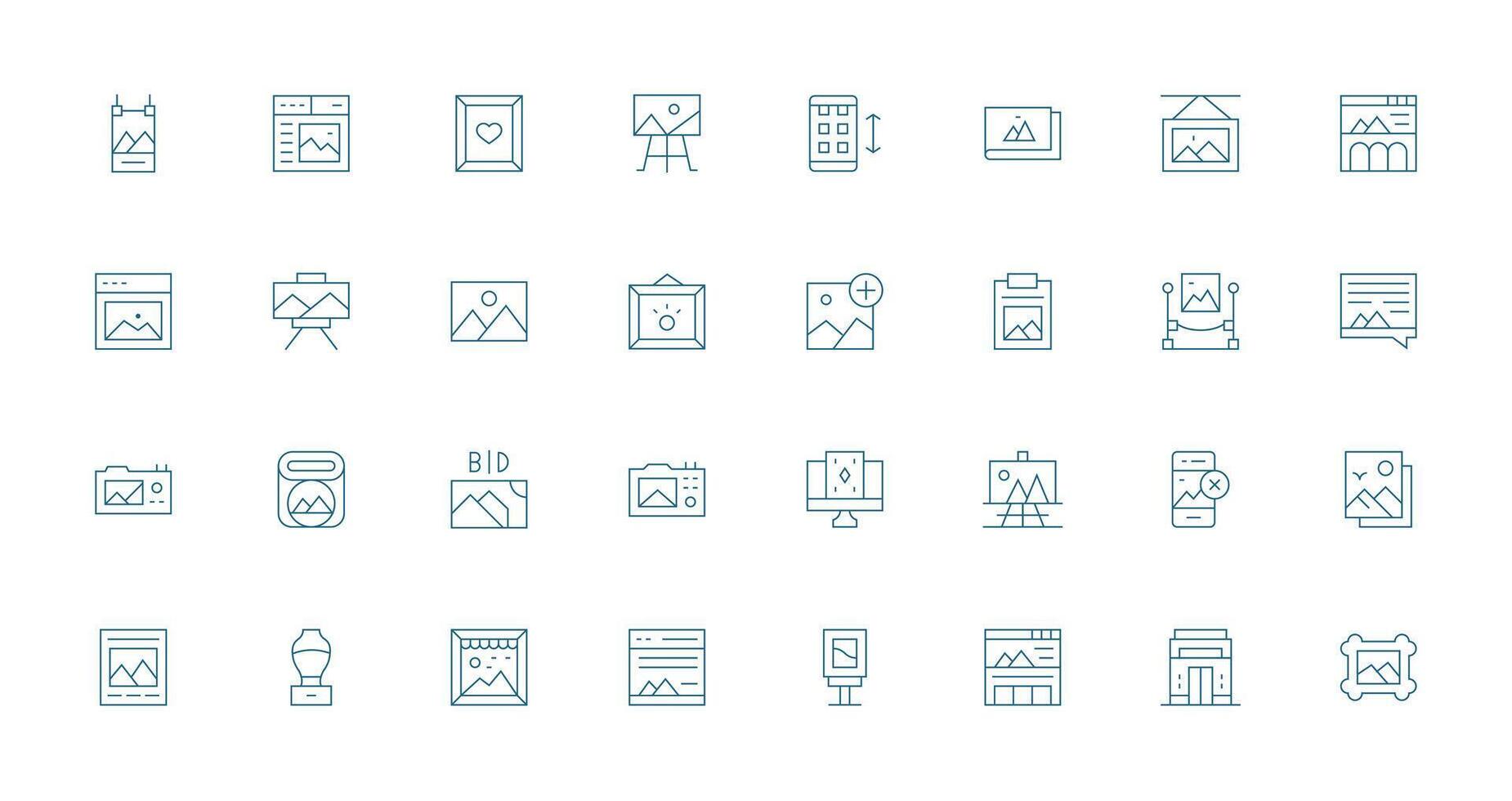 Thin Line Style Gallery Icons with 32 Vectors Icons Built for Visual Consistency Pack