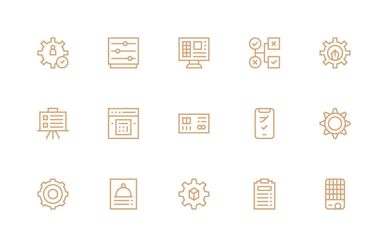 Options Icon Set with 15 Regular Line Graphics Essential Icon Set for Teams vector