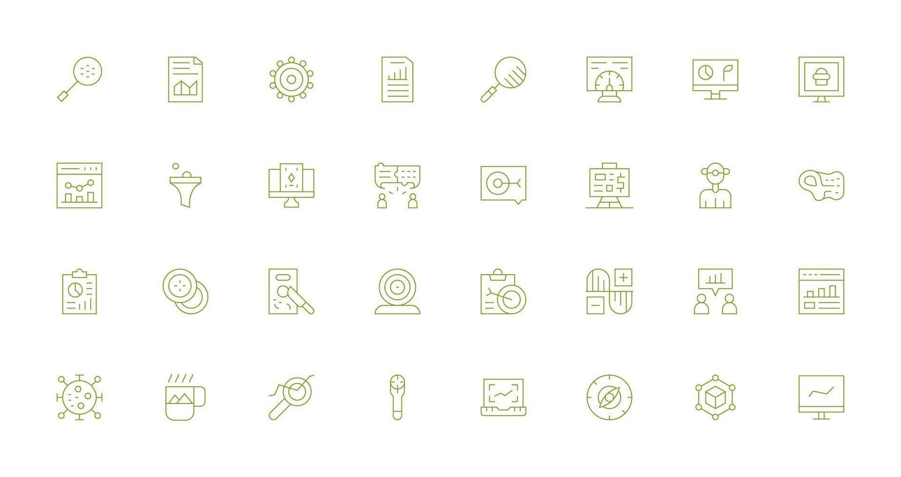 Visualization Icon Set with 32 Thin Line Graphics Reliable Icons for All Interfaces Free Vector