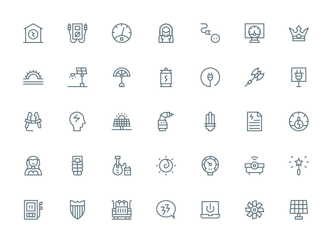 Regular Clean Line Style Power Icons with 35 Vectors Multi-Purpose Icon Set Free Vector