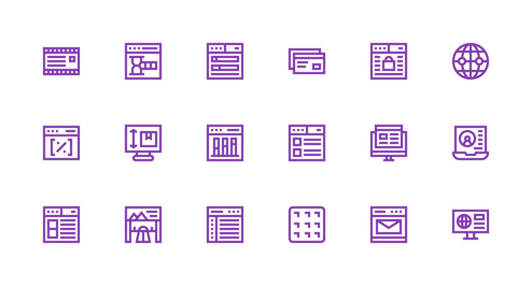 Strong Stroke Line Icons from Web Page Set with 18 Vectors All Device Compatible Icon Set Free Vector