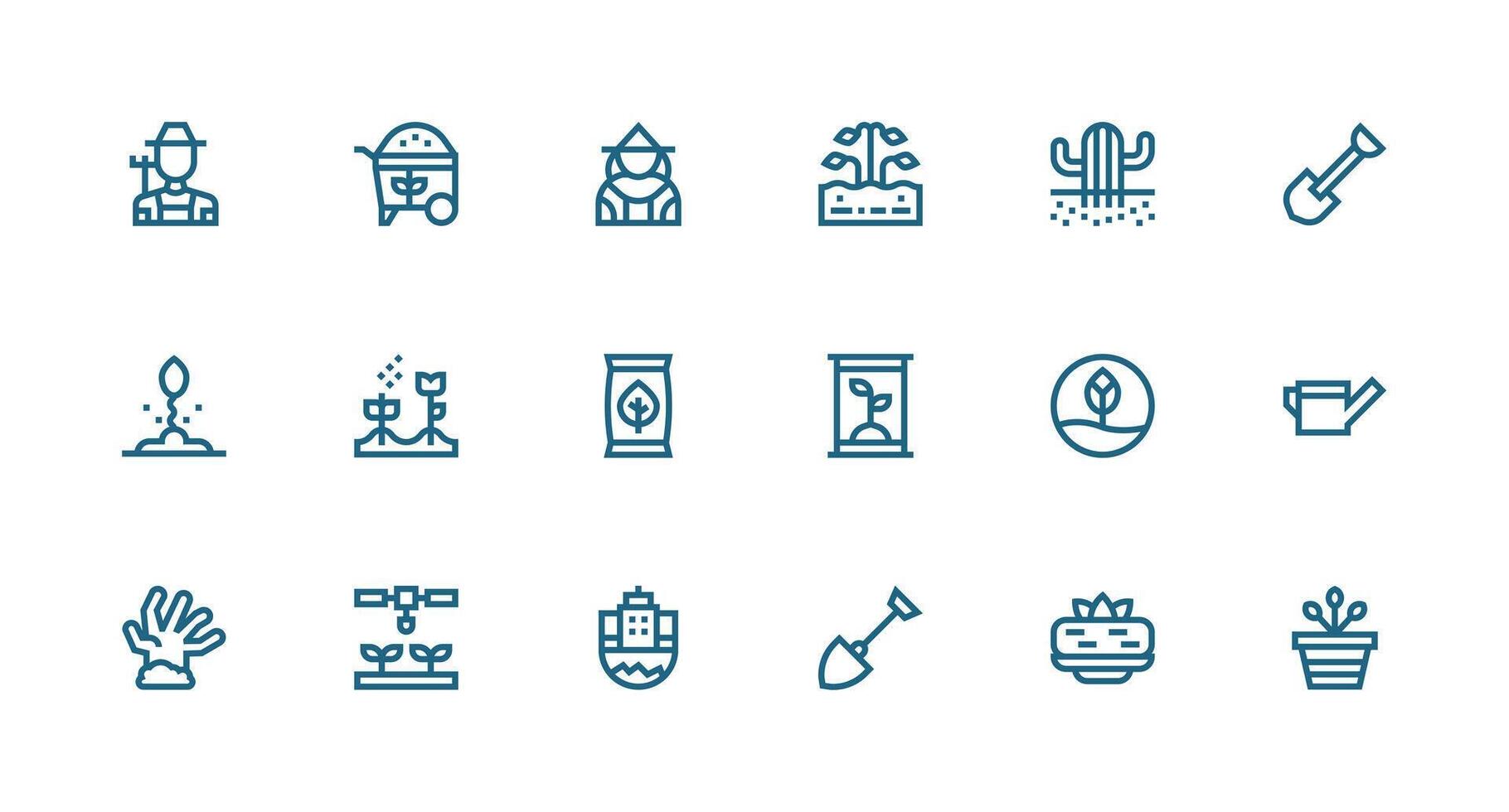 Soil Set with 18 Strong Stroke Line Icons Icon Set for Apps Free Vector