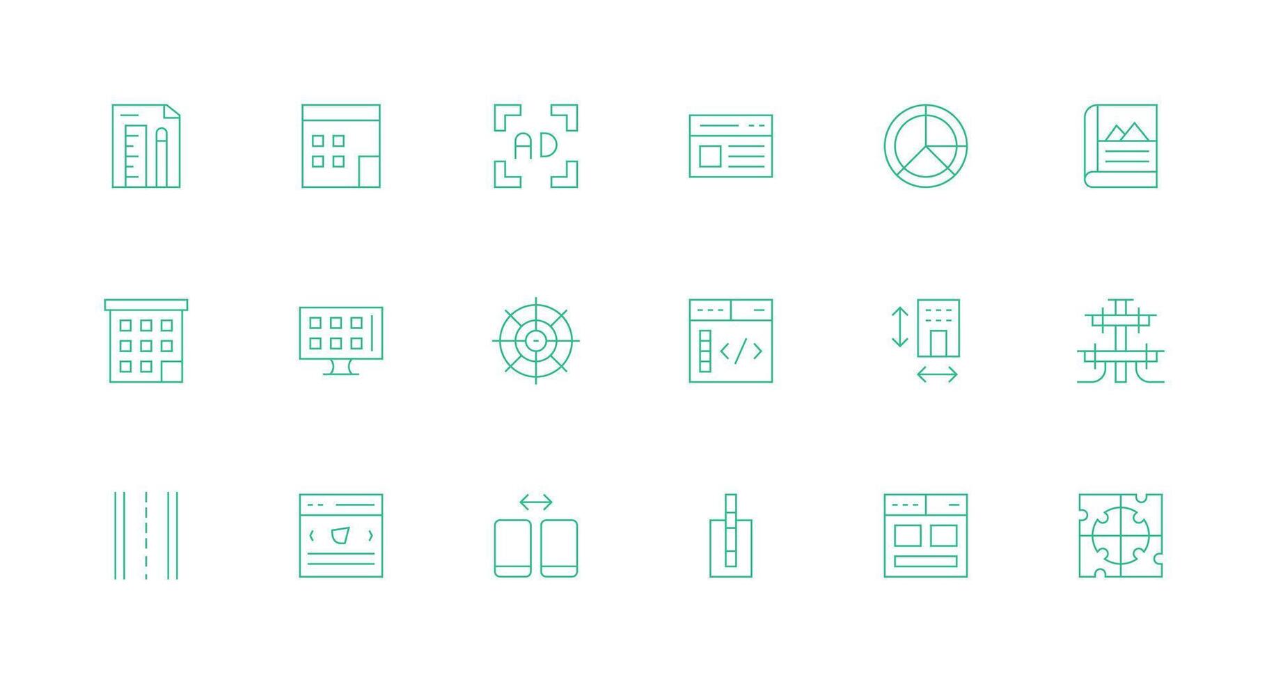 Layout Set with 18 Minimal Line Icons Line Icon Collection Free Vector