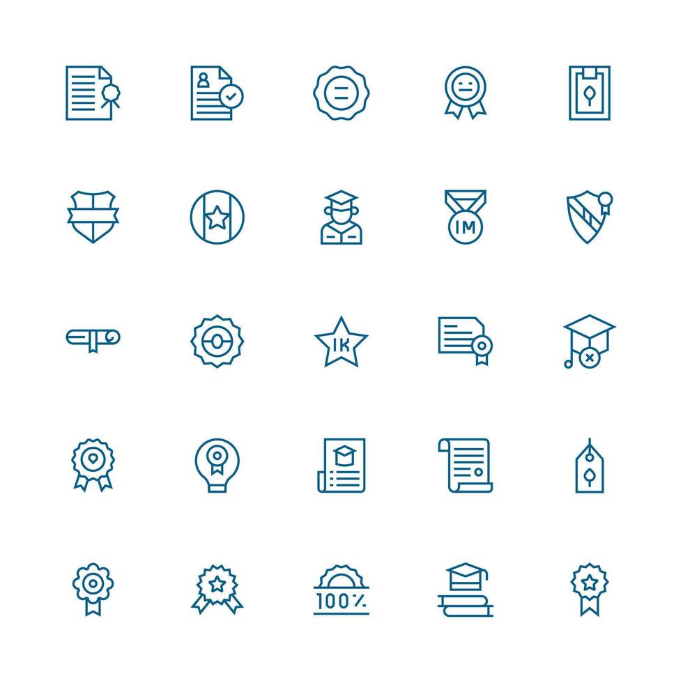 Certification Icon Set with 25 Medium Stroke Outline Graphics Complete Icon Bundle for Web Design Free Vector