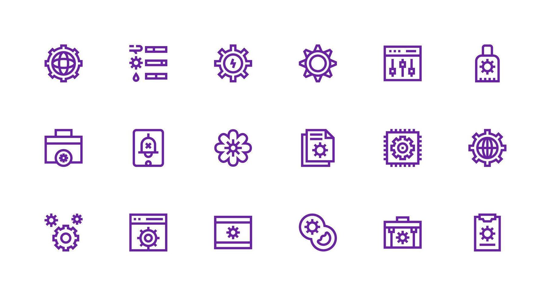 System Settings Visual Pack containing 18 Strong Stroke Line Icons Functional Icon Series vector