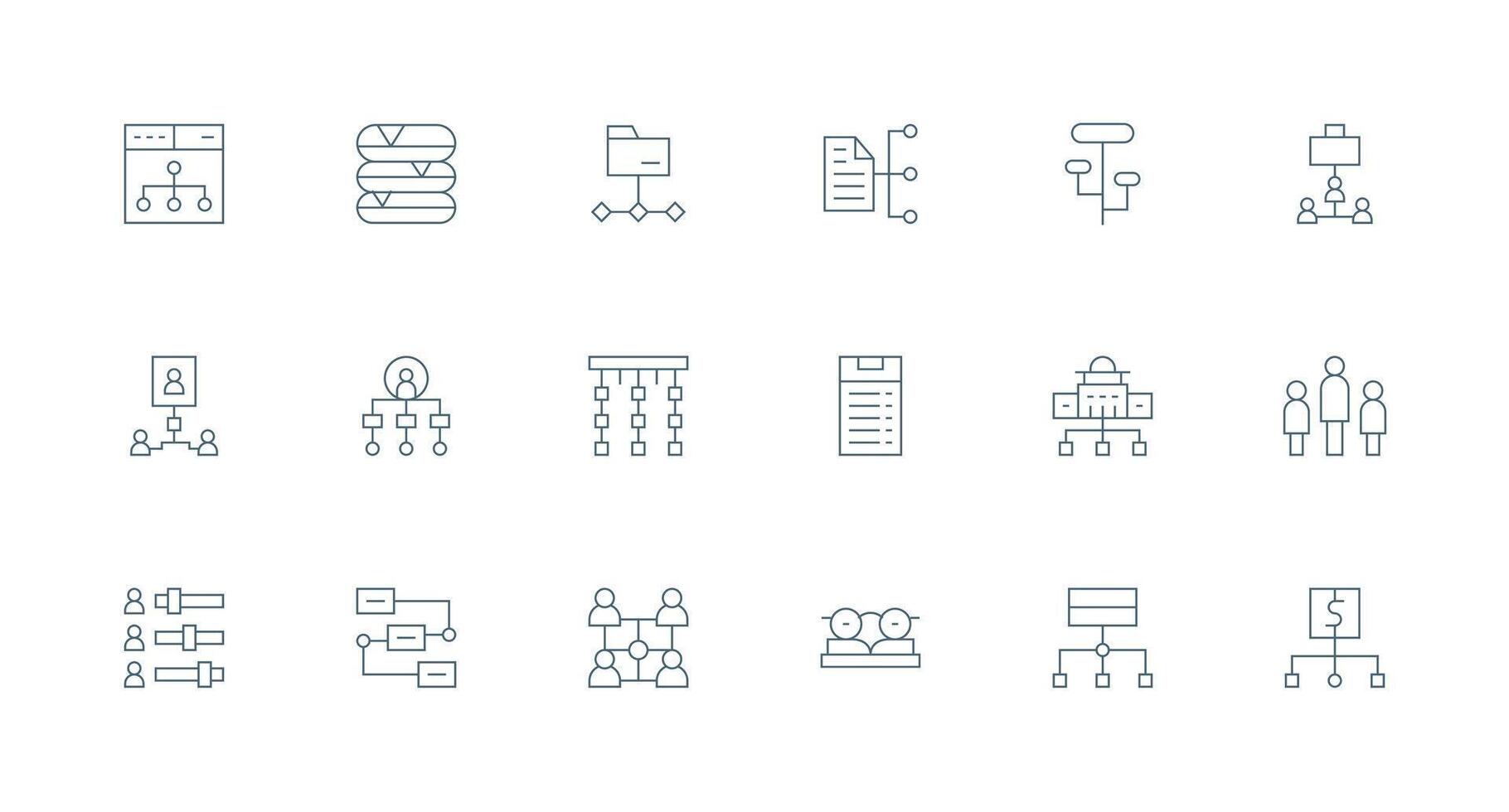 18 Minimal Line Style Icons from Hierarchy Collection Flat Icon Set vector