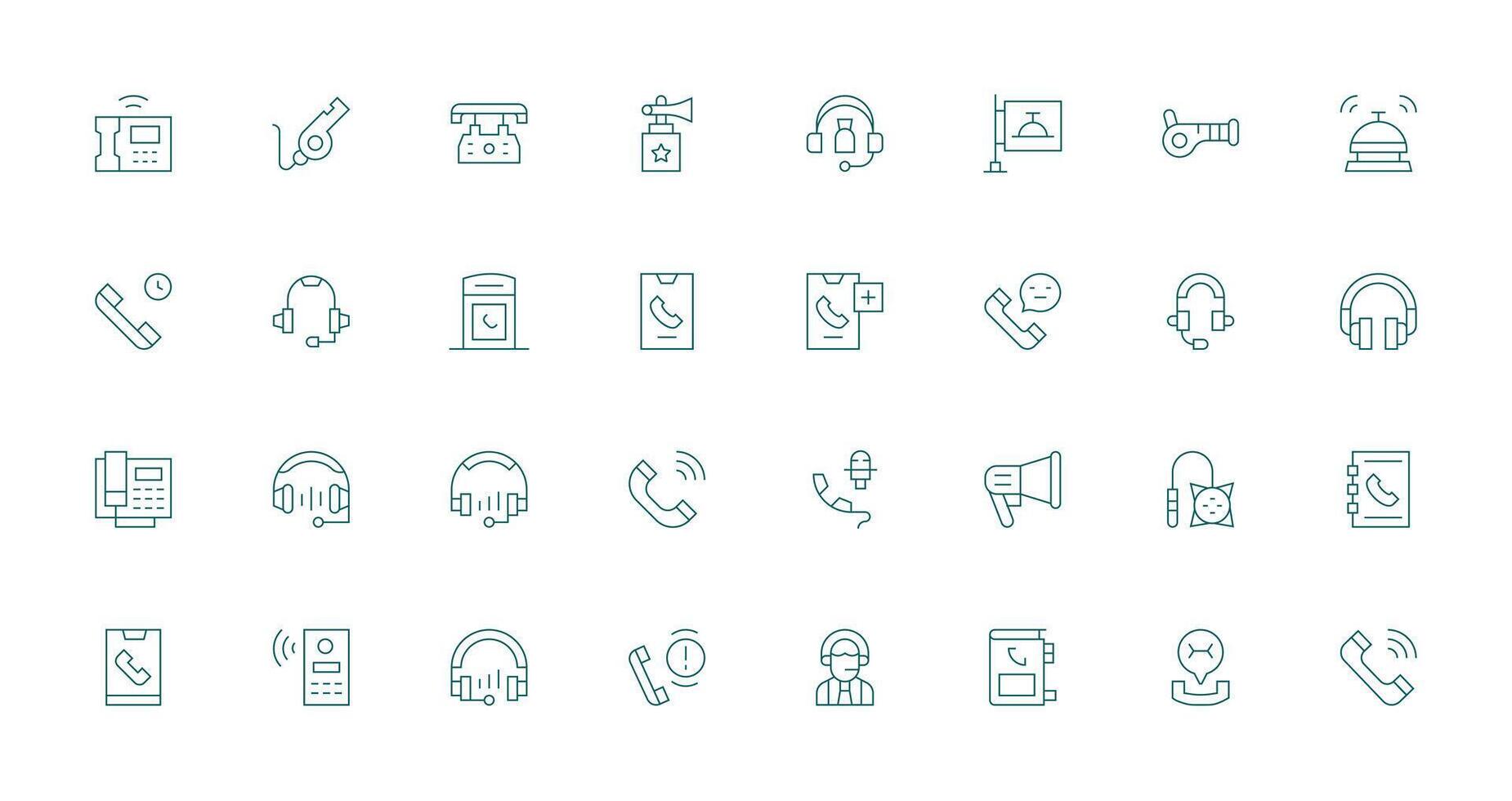 Call Icon Set with 32 Thin Line Graphics Layout Icon Collection vector