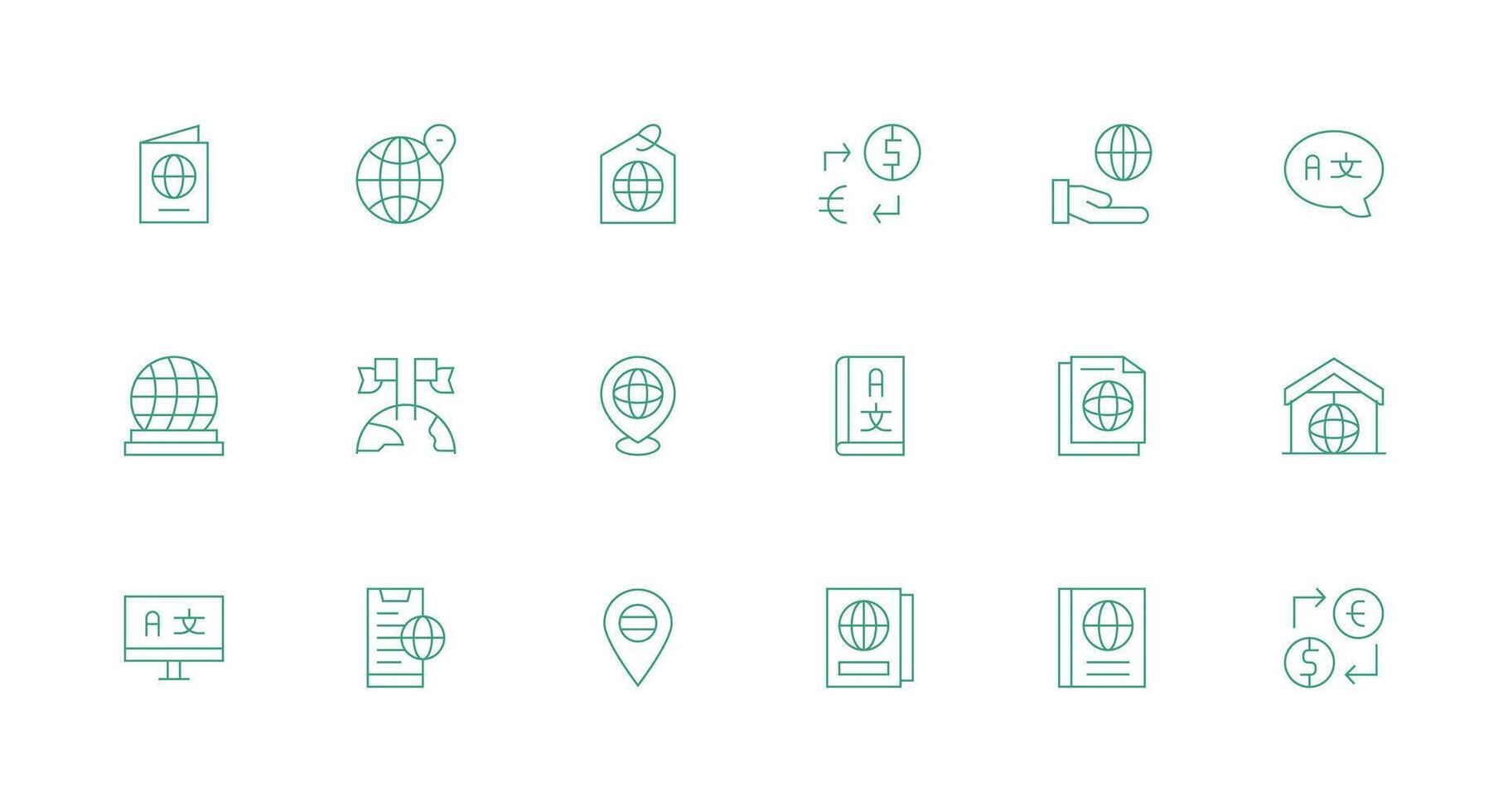 Minimal Line Style Foreign Icons with 18 Vectors Multi-Style Icons for Creative Projects