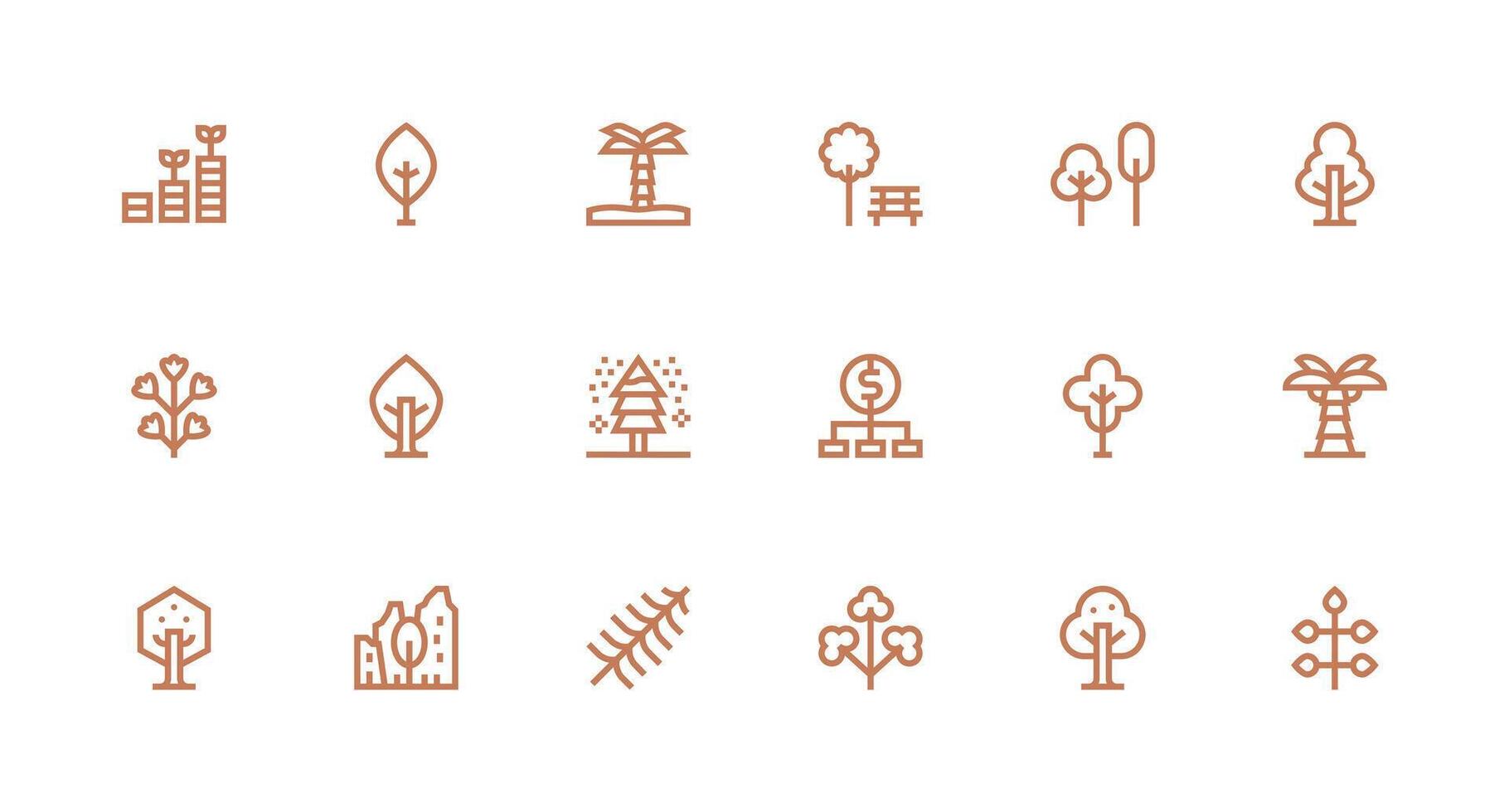 18 Strong Stroke Line Designs for Tree Icons Minimal Icon Set for Interface Projects Free Vector