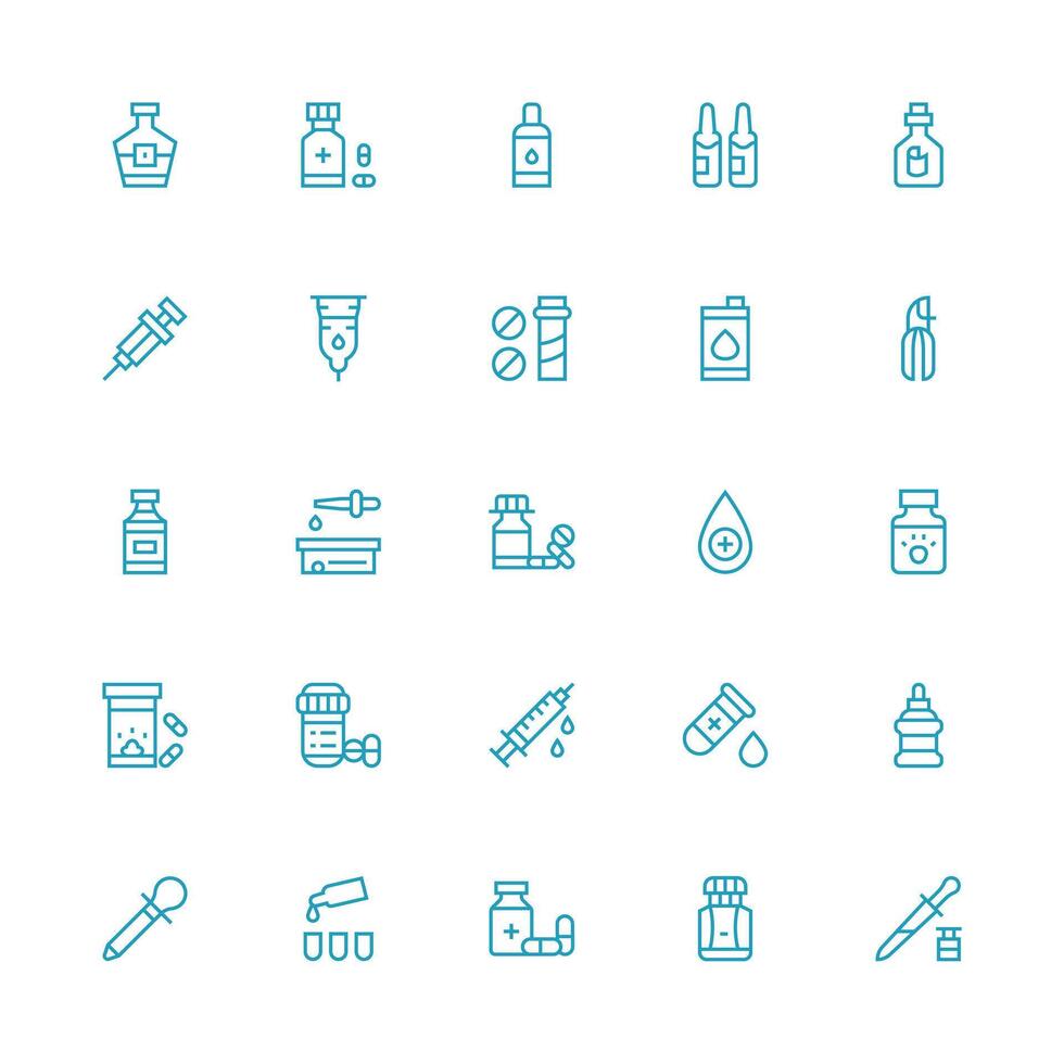 25 Icons for Vial in Medium Stroke Outline Format Flexible Icon System for Web Interfaces vector