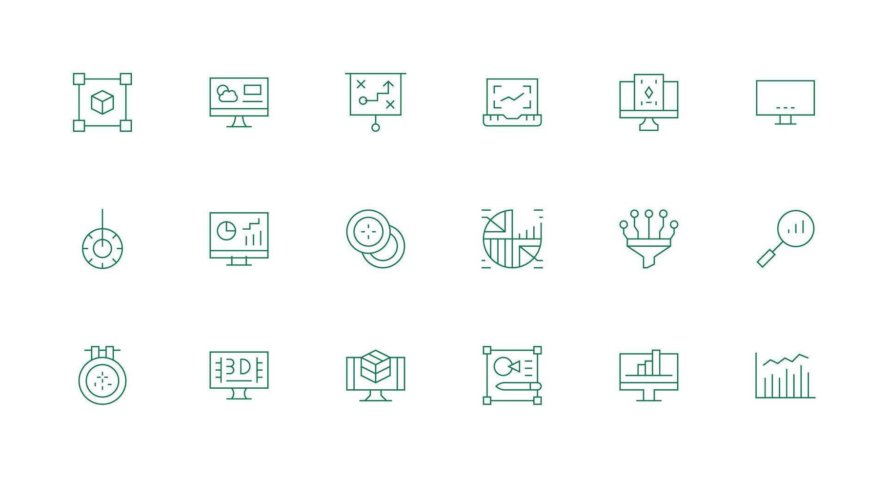 Visualization including 18 Minimal Line Illustrations Icon Set for Web Free Vector