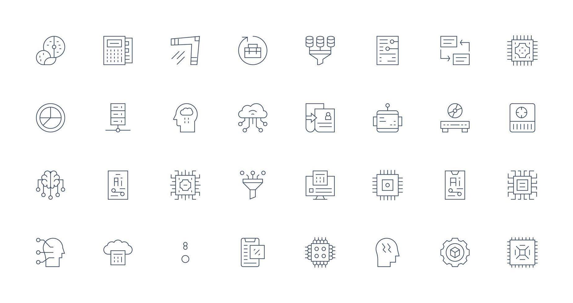 32 Thin Line Icons for Data Processing Graphics Essential Icon Collection vector