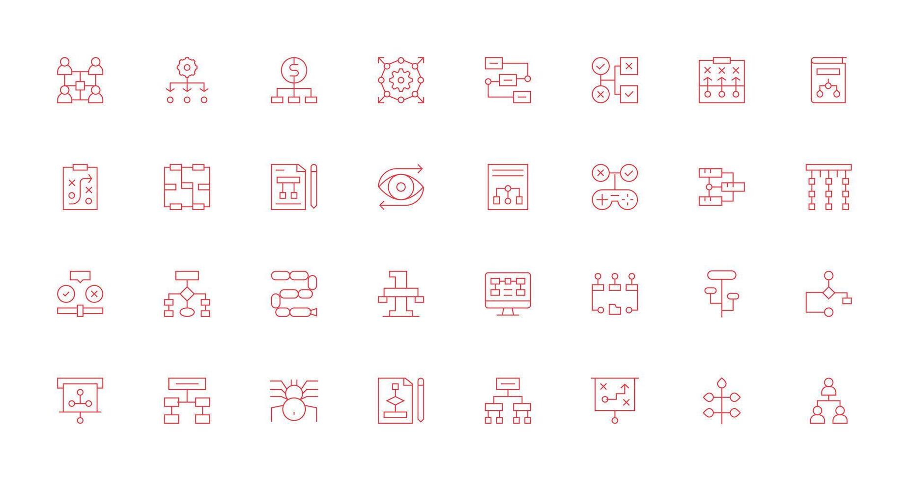 32 Flowchart Icons in Thin Line Aesthetic Web Icon Collection vector