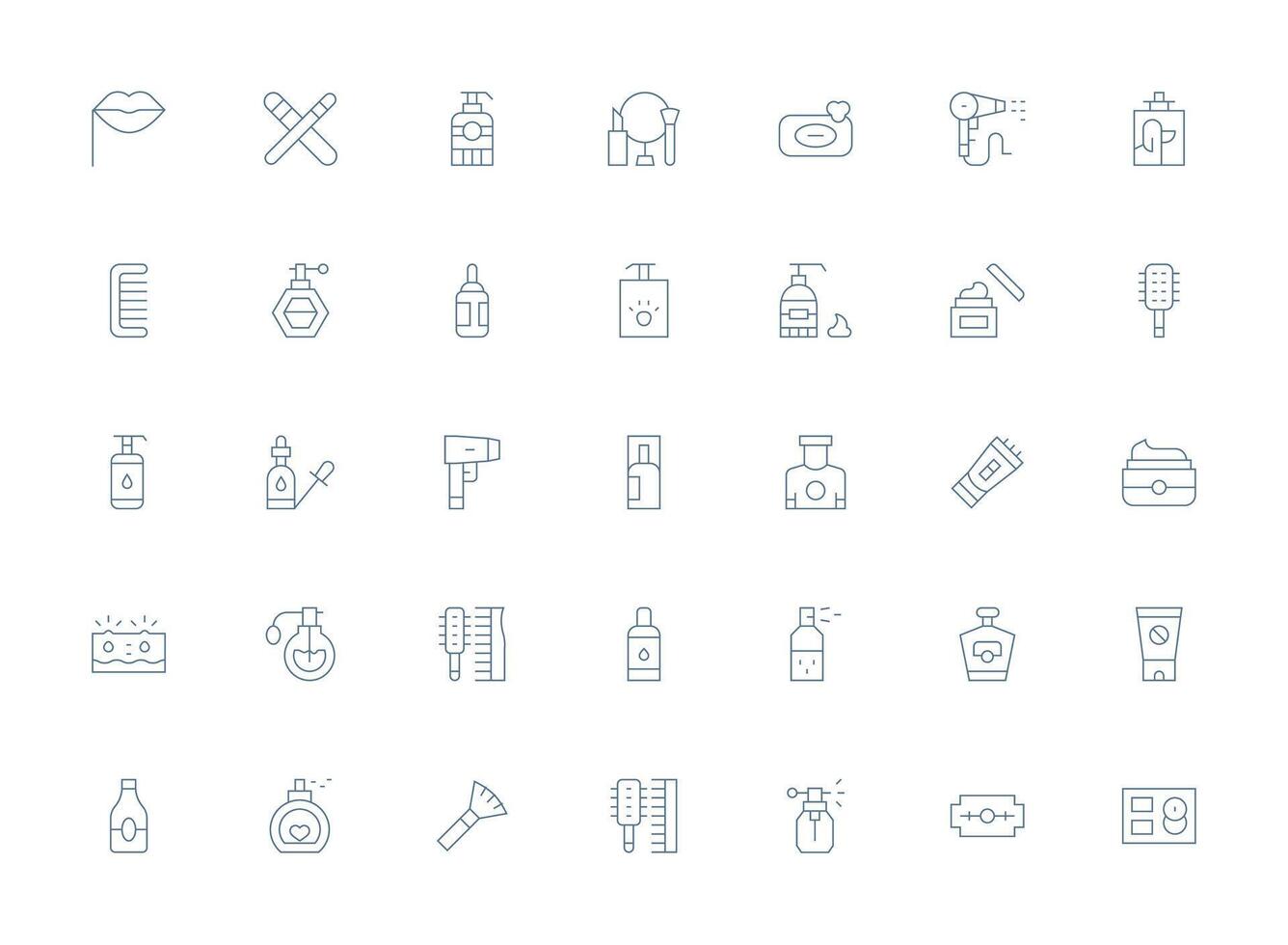 Cosmetics Icon Set with 35 Light Line Graphics Fully Editable Icon Set for Web vector