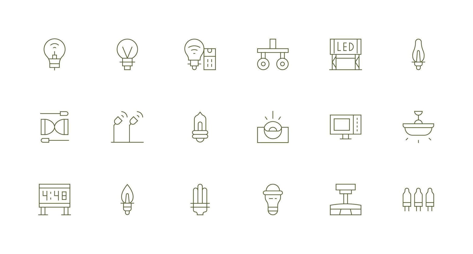 Minimal Line Style Led Icons with 18 Vectors Clear and Concise Icon Set Collection