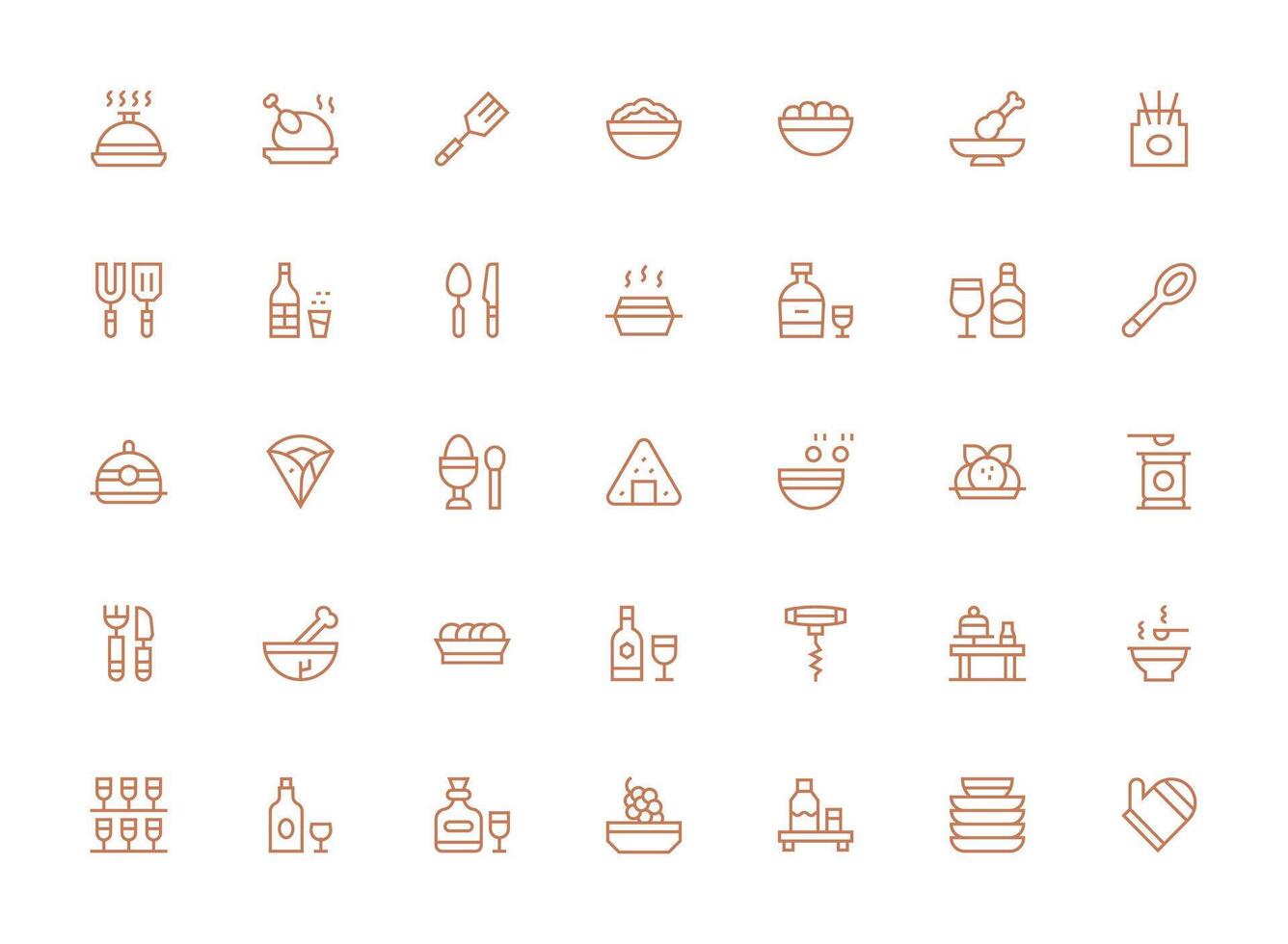 Serving Icon Collection with 35 Regular Clean Line Designs Balanced Icon Set for Functional Design Free Vector