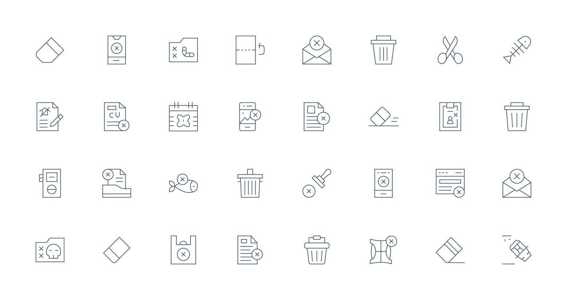 Delete Design Icons featuring 32 in Thin Line Style Customizable Icon Series for Mobile Screens vector