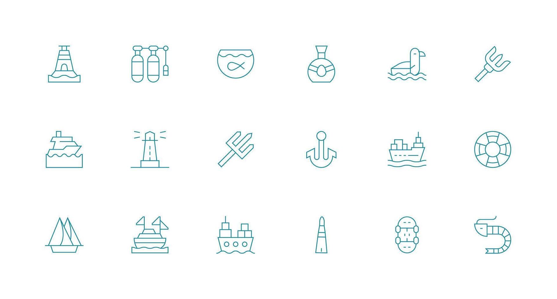 Minimal Line Style Sea Icons with 18 Vectors Flexible Icon System for Web Interfaces