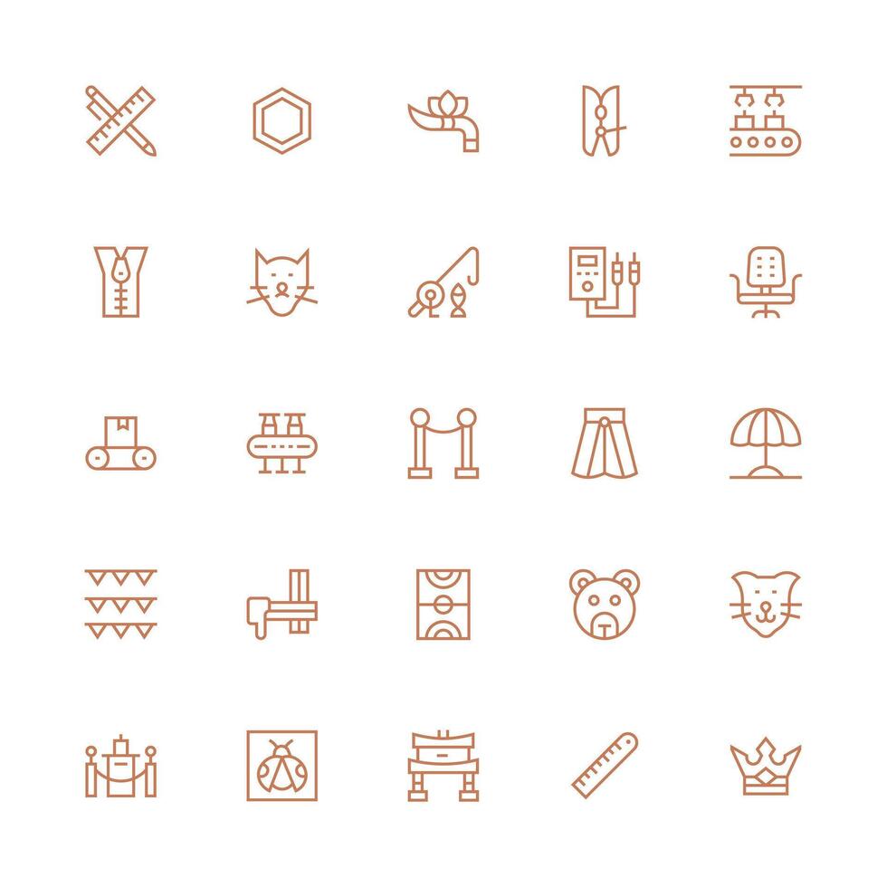 Line Design Icons featuring 25 in Medium Stroke Outline Style High-Resolution Icons for Any Platform Free Vector