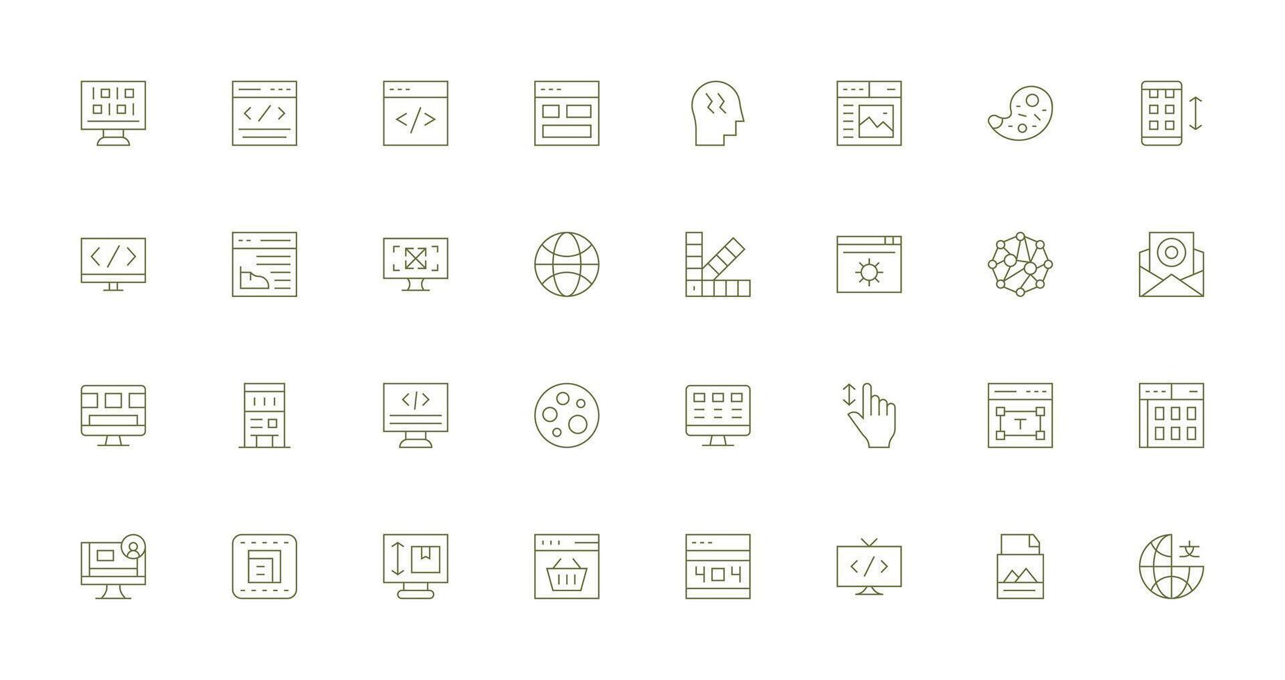 Web Design featuring 32 Icons in Thin Line Design Simple Icon Pack Free Vector