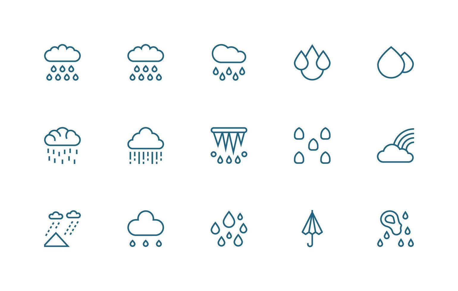 Drizzle Visual Pack containing 15 Regular Line Icons Complete Icon Set for Mobile Apps vector