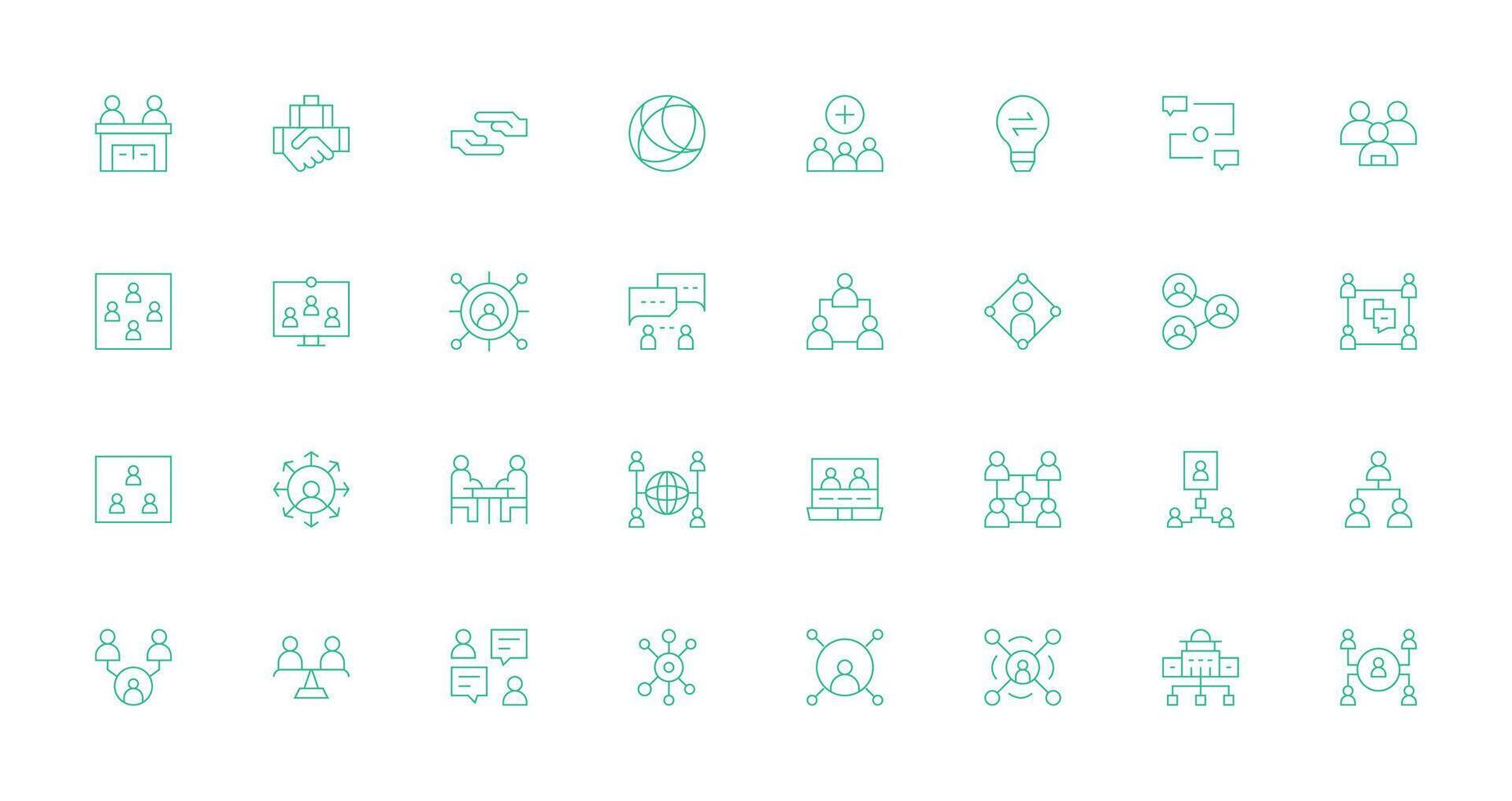 Collaboration Icon Collection with 32 Thin Line Designs Interface Icon Collection for Daily Projects Free Vector