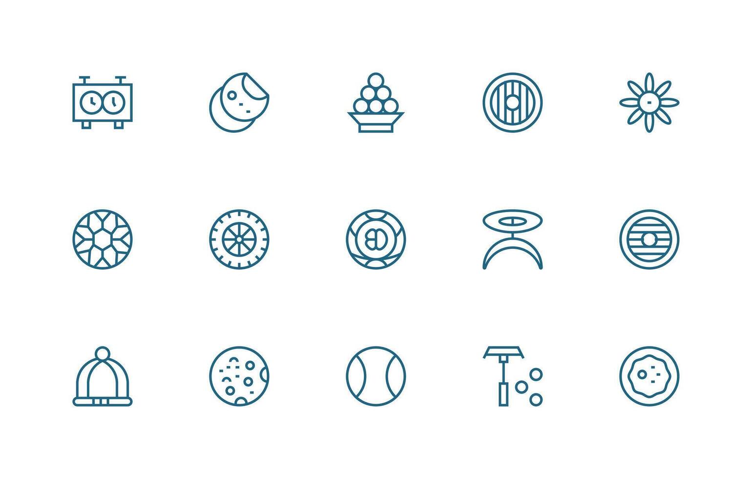 Round Design Icons featuring 15 in Regular Line Style Interface Icon Collection vector