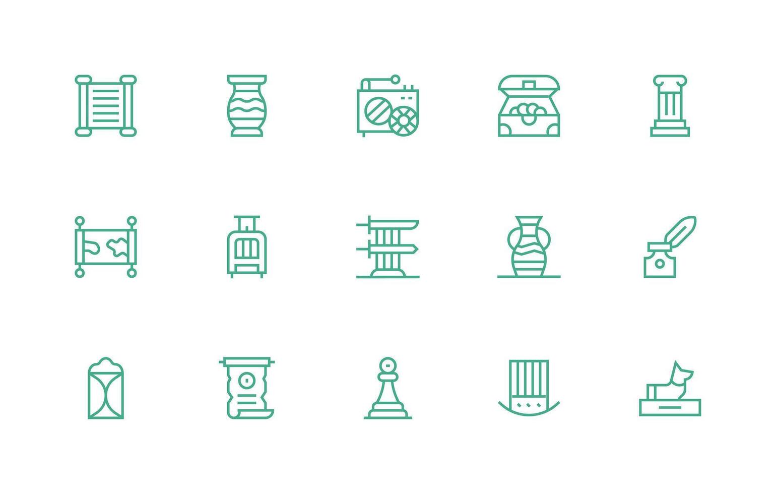 Antique Icon Set with 15 Regular Line Graphics Web and App Icon Pack Collection vector