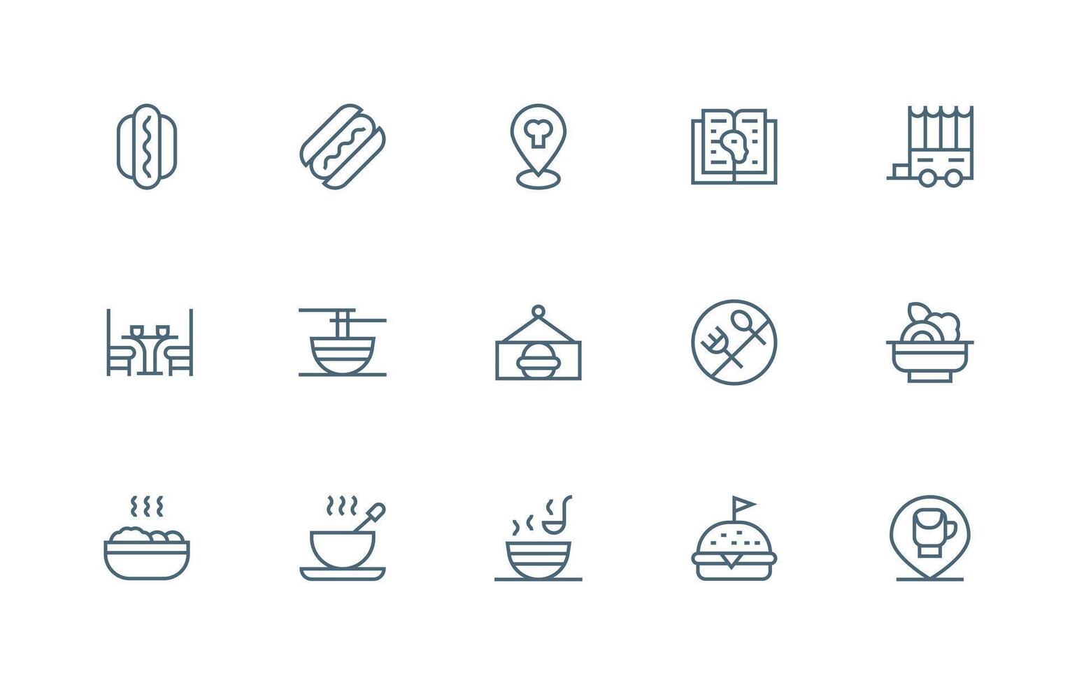 Eatery Design Icons featuring 15 in Regular Line Style Neatly Designed Icons for Web Platforms vector