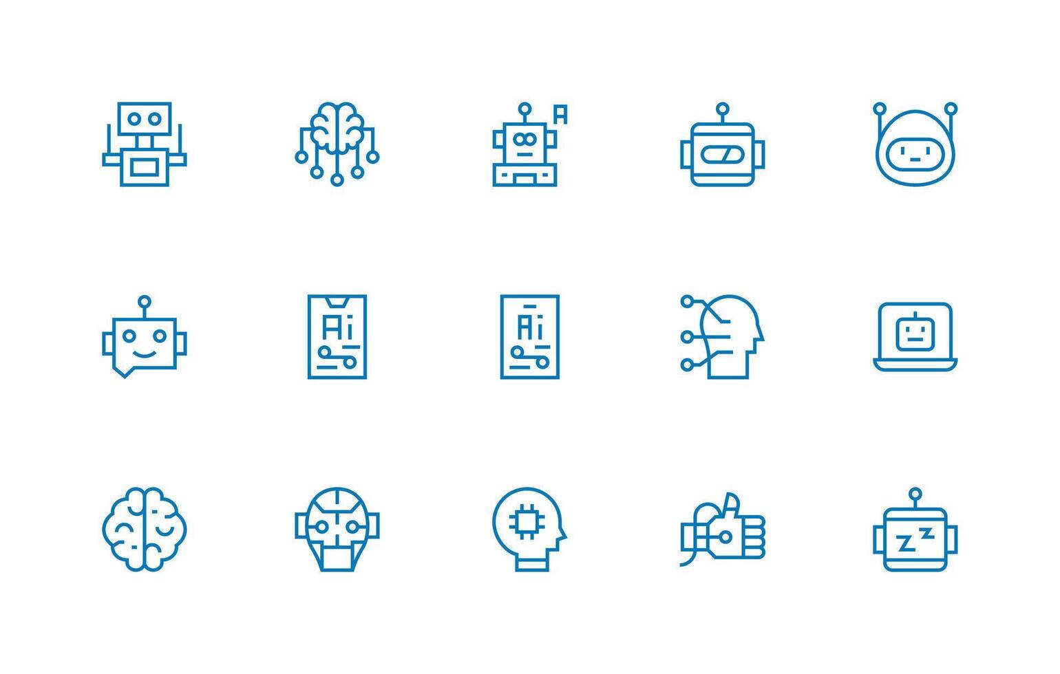 15 Regular Line Vectors for Artificial Intelligence Theme Dashboard Icon Series
