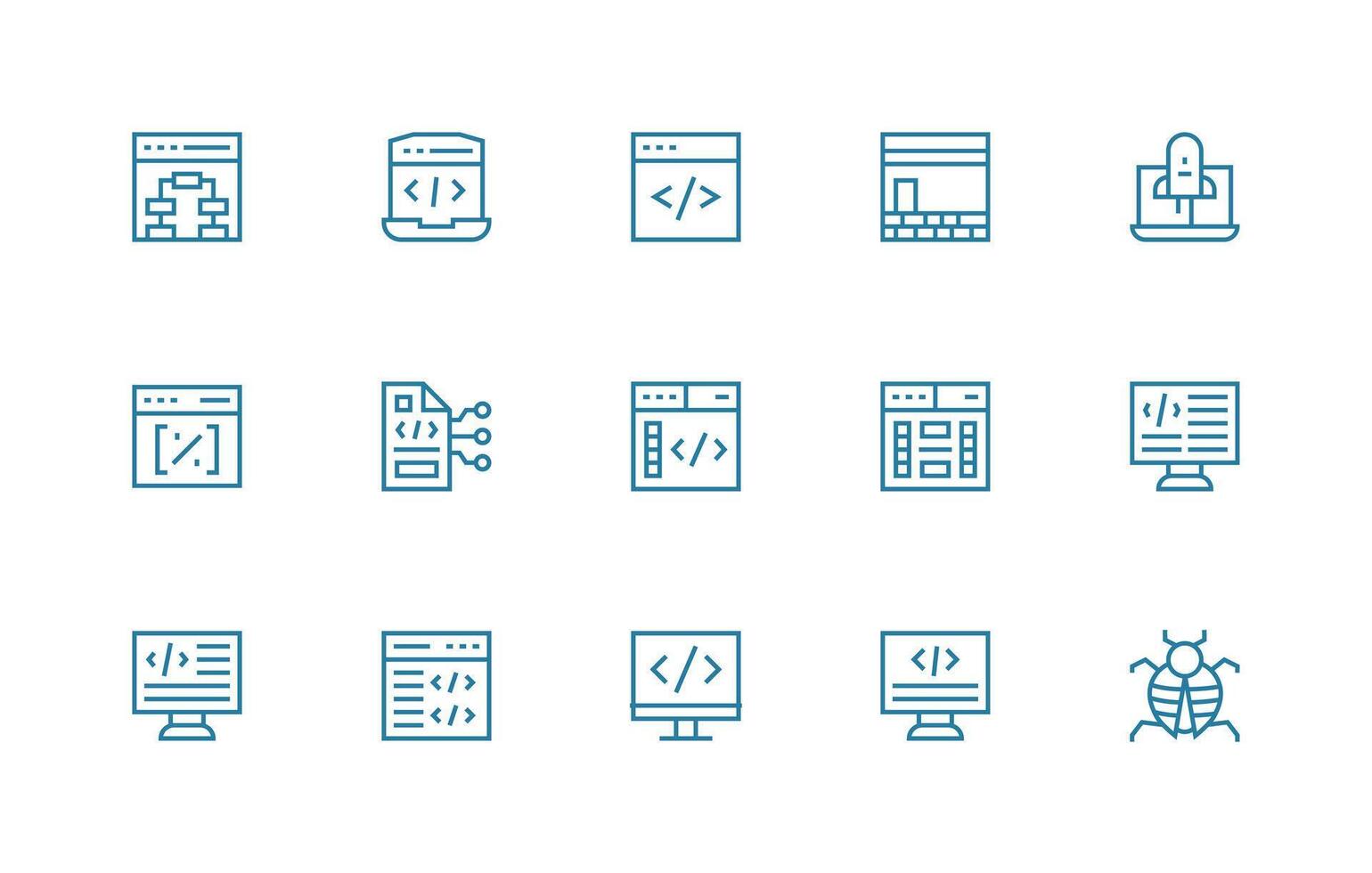 15 Icons for Coding in Regular Line Format Display Icon Pack Free Vector