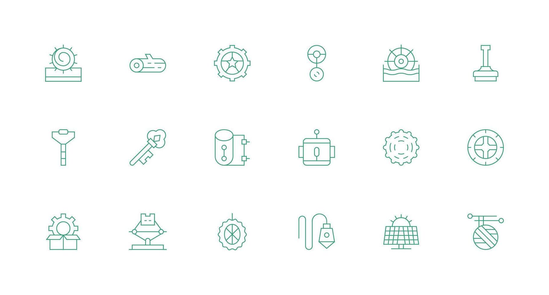 Mechanism Icon Set with 18 Minimal Line Graphics Display Icon Pack Free Vector