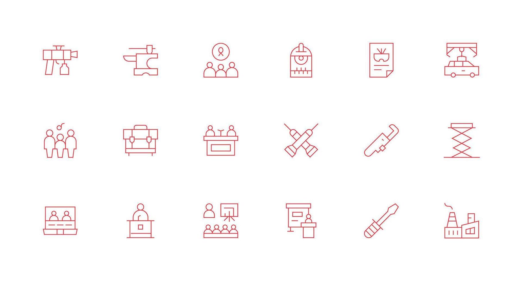 Workshop Icon Set with 18 Minimal Line Graphics Icon Set Free Vector