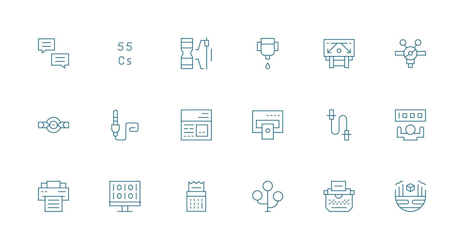 18 Minimal Line Icons for Output Graphics Professional Icon Set vector
