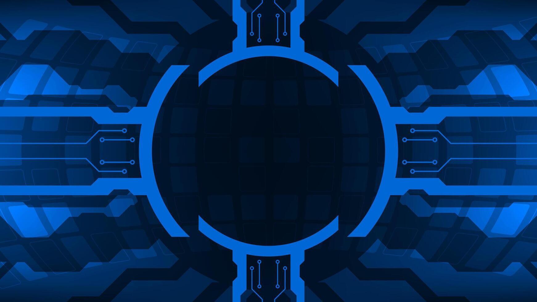 Abstract circuit board digital tech circle frame technology with internet concept futuristic blue background Pro Vector