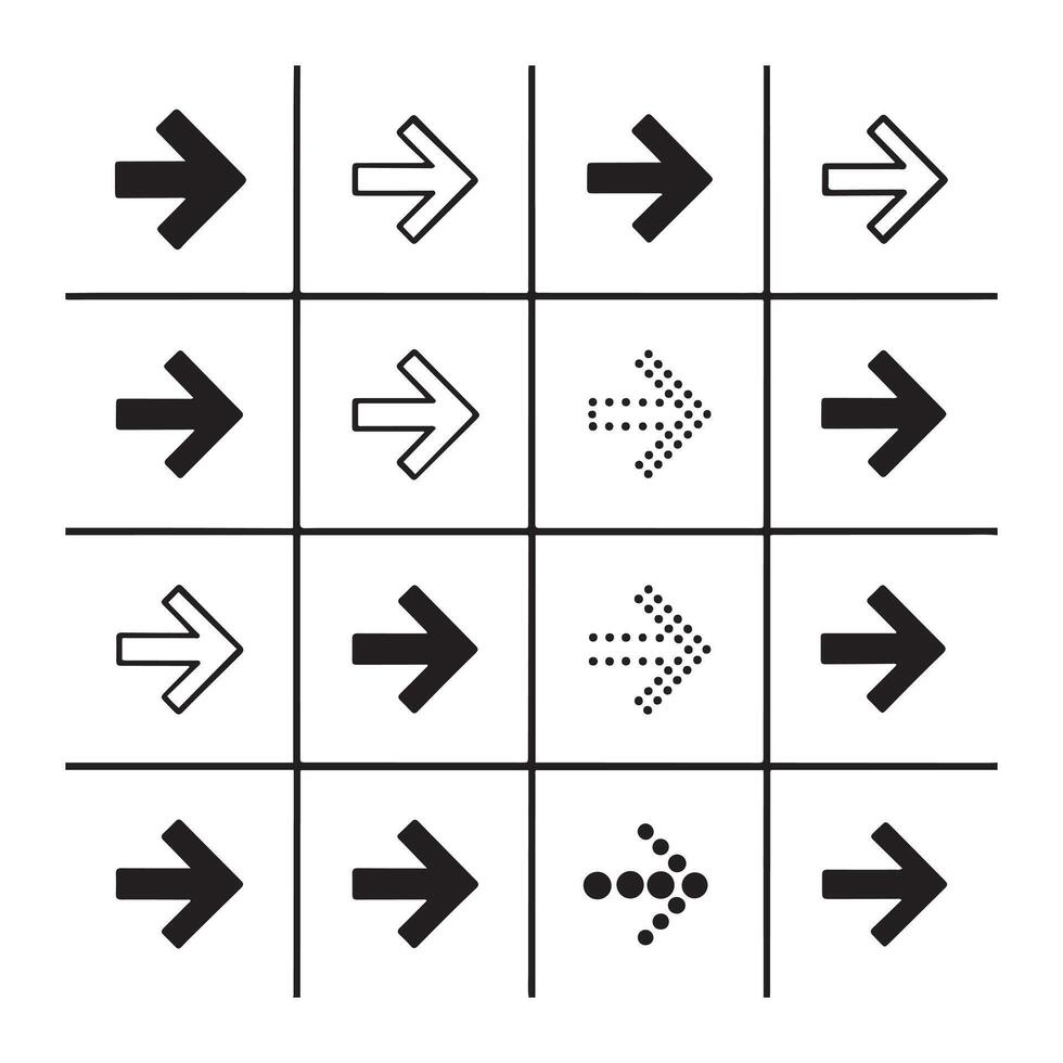 Set of diverse black and white arrow icons in a grid layout for interface design vector