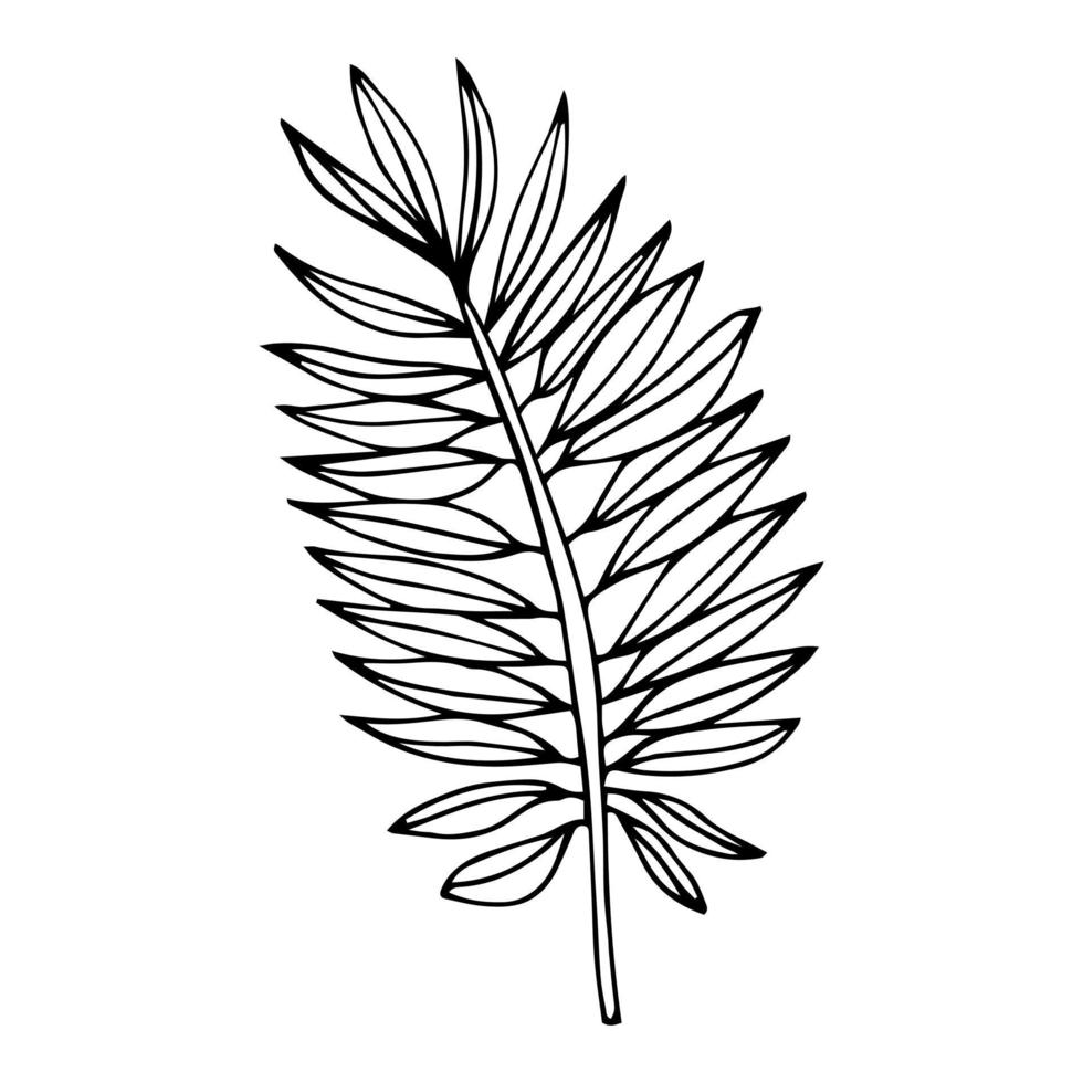 Tropical palm leave in sketch style, isolated vector illustration. Leave of palm tree in linear doodle style. Botanical minimalist print of exotic leave, sketch design. Pro Vector