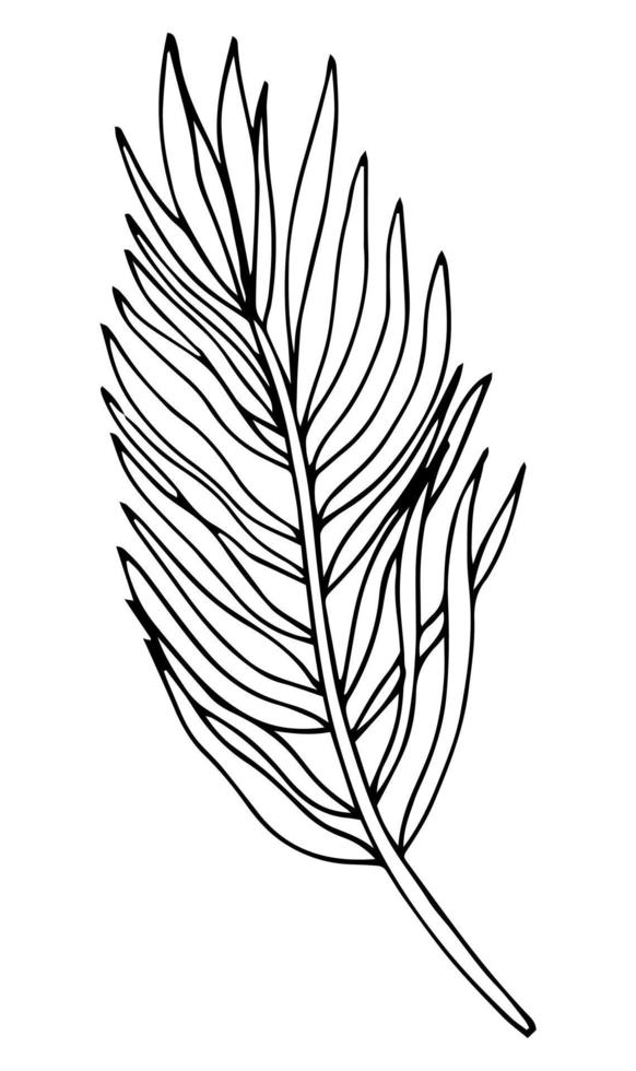 Tropical palm leave in sketch style, isolated vector illustration. Leave of palm tree in linear doodle style. Botanical minimalist print of exotic leave, sketch design. Pro Vector