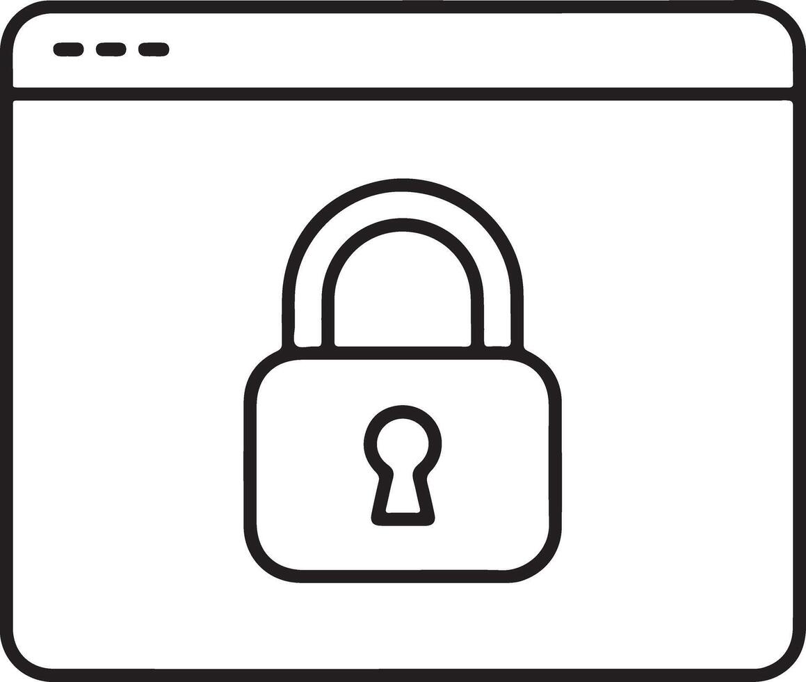 Digital security padlock icon on a computer browser window outline Pro Vector
